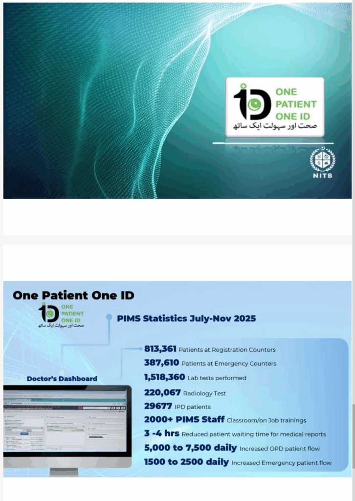 ISLAMABAD: The Pakistan Institute of Medical Sciences (PIMS) has achieved a major milestone in digital health, registering over 8 lakh patients in just five months under the One Patient One ID system.